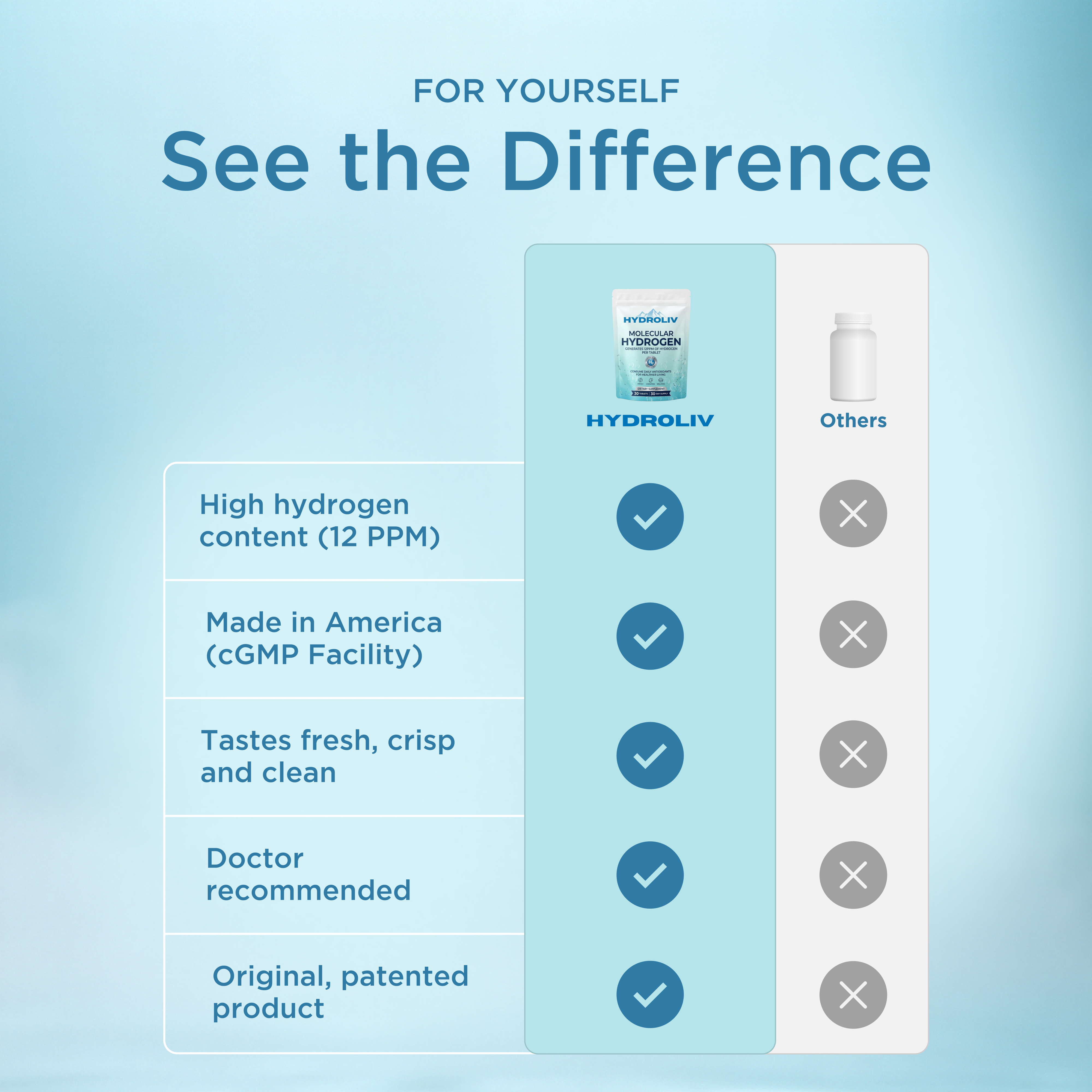 No. Hydrogen is a dietary supplement formulated with clinically studied natural compounds. It does not require a prescription.
